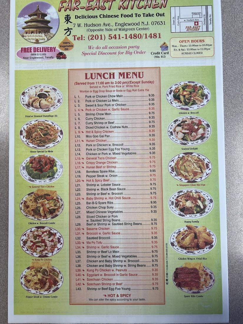 Far East Kitchen is more than just a Chinese restaurant; it is a beloved local gem in Englewood, NJ, where community and cuisine unite. Nestled at 7 W Hudson Ave, we have built strong ties with our patrons who appreciate not only our authentic dishes but also our consistent, friendly service. Our owners and staff cultivate a welcoming atmosphere that attracts locals looking for reliable takeout and delivery options, especially on Saturdays when we see the busiest crowds.